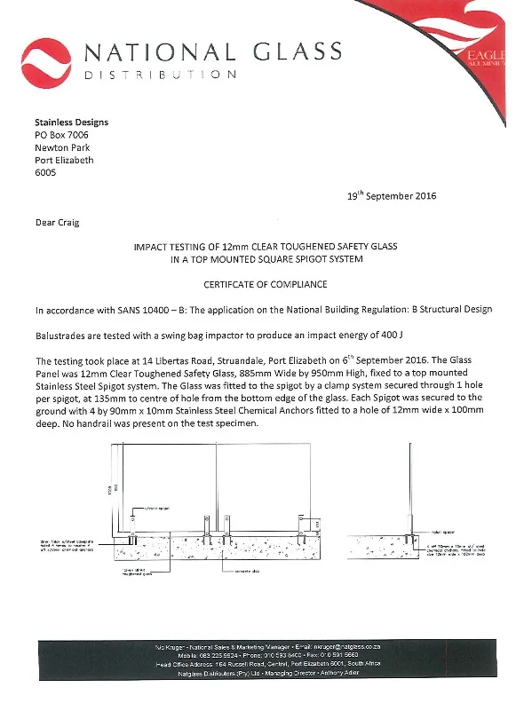 - All Stainless Design balustrade systems are tested to ensure that they comply with the legislative standards.