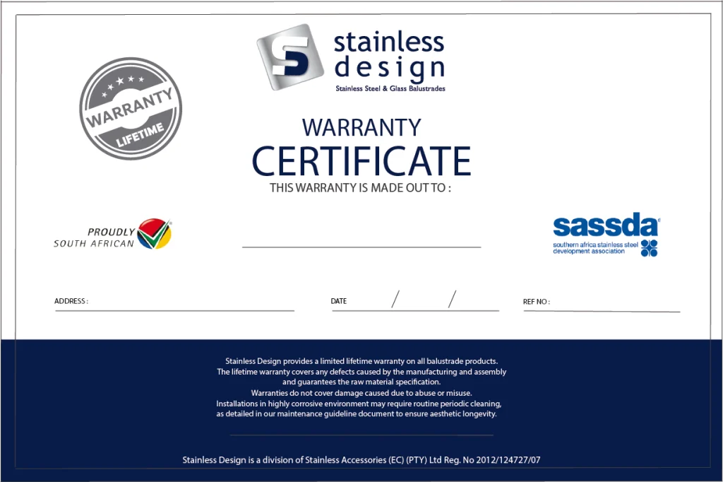 Stainless Design provides a limited lifetime warranty on all balustrade products.